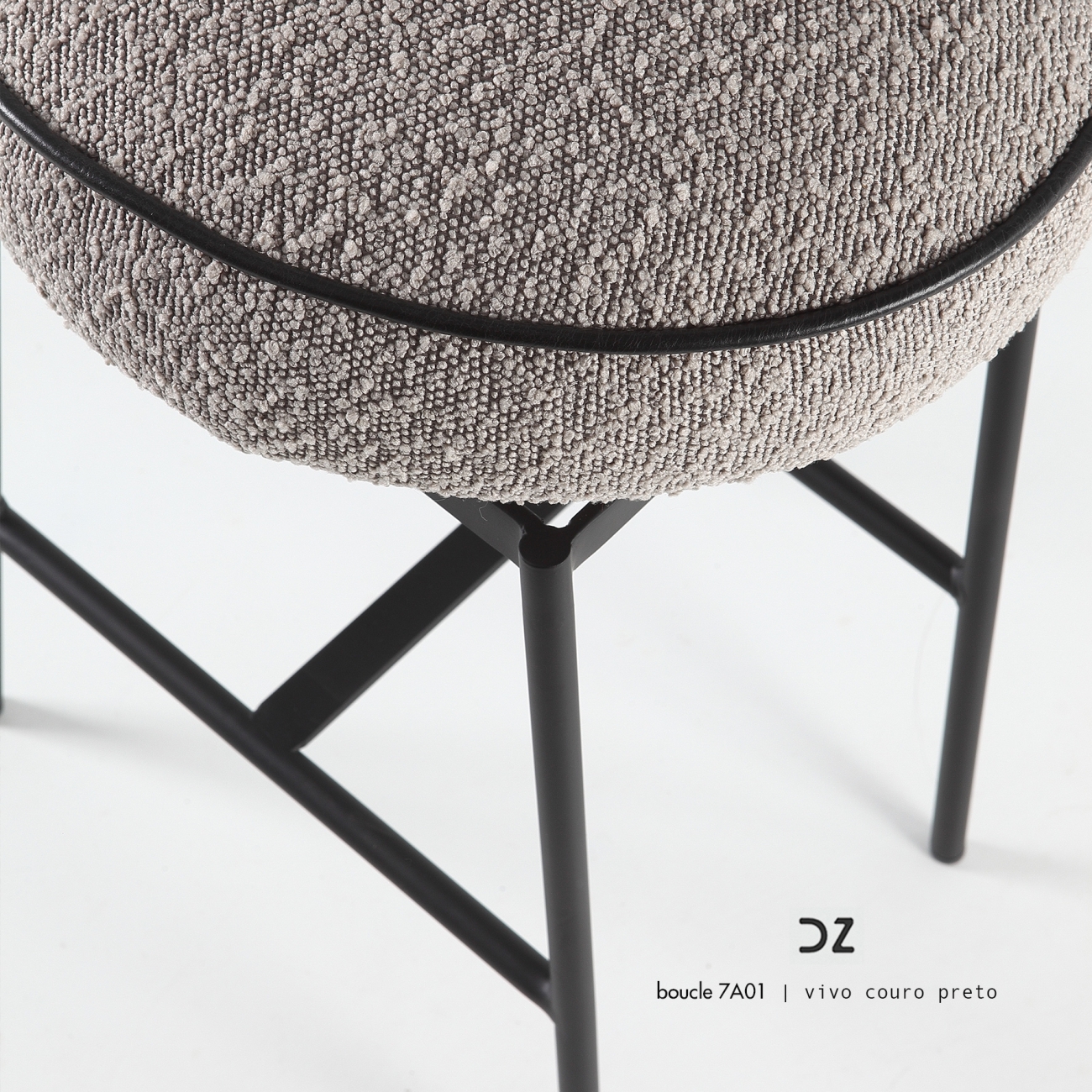 A banqueta Macaron nas alturas de 50 e 60cm de assento, apresenta um design único, com estrutura em metal e assento com estofamento confortável, onde pode ser escolhido todos os tecidos que a marca Daniela Ziegler tem no seu catalogo.
