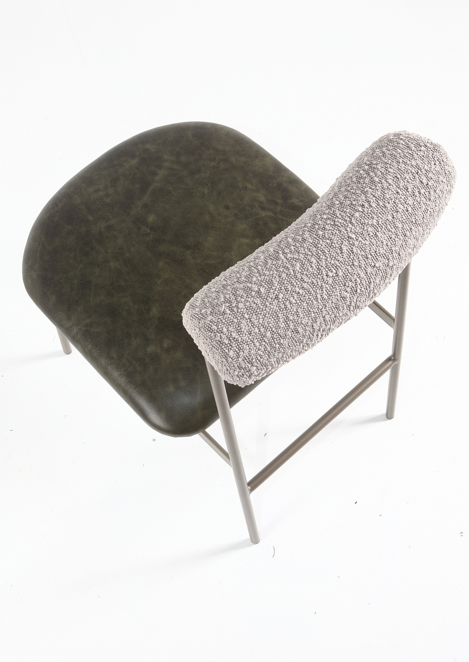 Banqueta Oliva 65CM Compose Bronze Claro em Couro Verde e Tecido 7A01