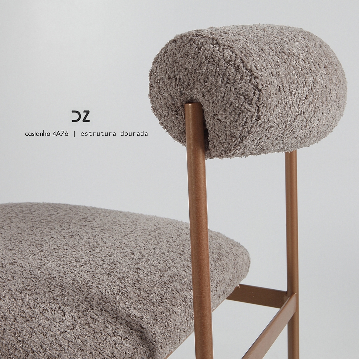 Banqueta Oliva 70CM Dourada com Tecido Castanho