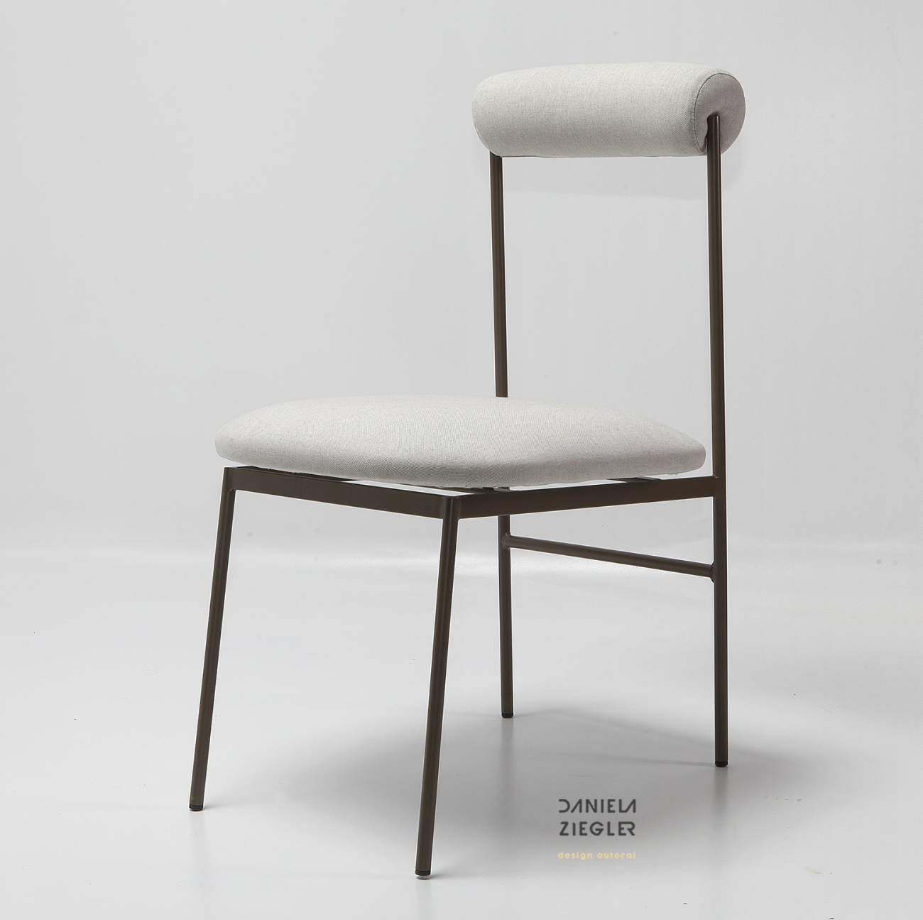 O desenho da cadeira Oliva foi inspirado no mobiliário de estilo contemporâneo, este valoriza peças que sejam ao mesmo tempo simples e marcantes. A estrutura da cadeira tira partido das principais características do aço como resistência e a maleabilidade criando formas sinuosas e leveza visual.