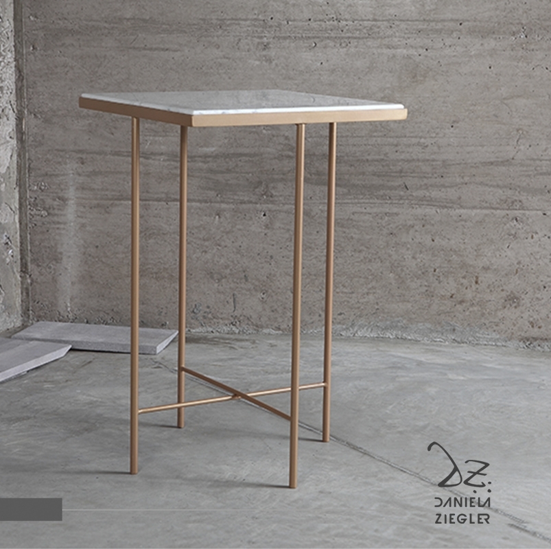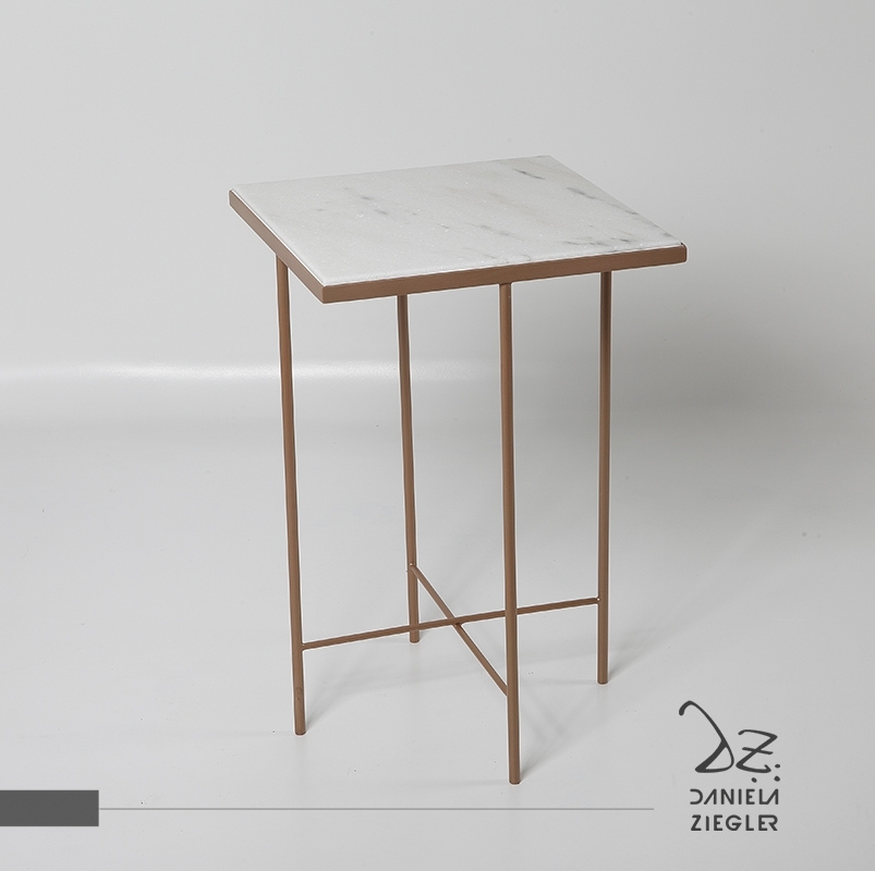 Estrutura Dourada e Tampo em Mármore Carrarinha esta a Pronta Entrega.