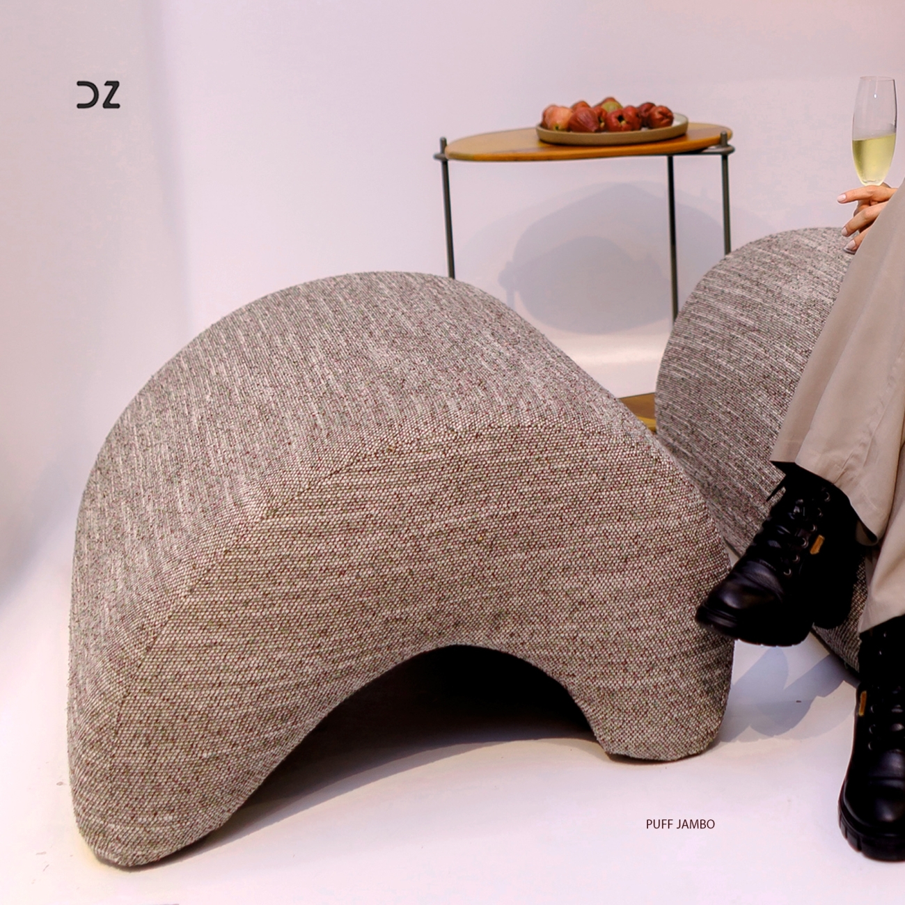 O Puff Jambo traduz a essência do conforto em forma e gesto. Suas curvas suaves e textura marcante convidam ao toque e à contemplação, compondo com leveza diferentes espaços. Versátil e cheio de identidade, complementa a Poltrona Jambo ou se destaca sozinho como ponto de aconchego.